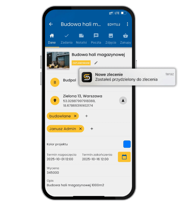 Powiadomienia push stały się interaktywne — po kliknięciu prowadzą użytkownika bezpośrednio do powiązanego elementu, np. konkretnego zlecenia. Dzięki temu reakcja na nowe zadania lub przypisania jest natychmiastowa i wygodna.